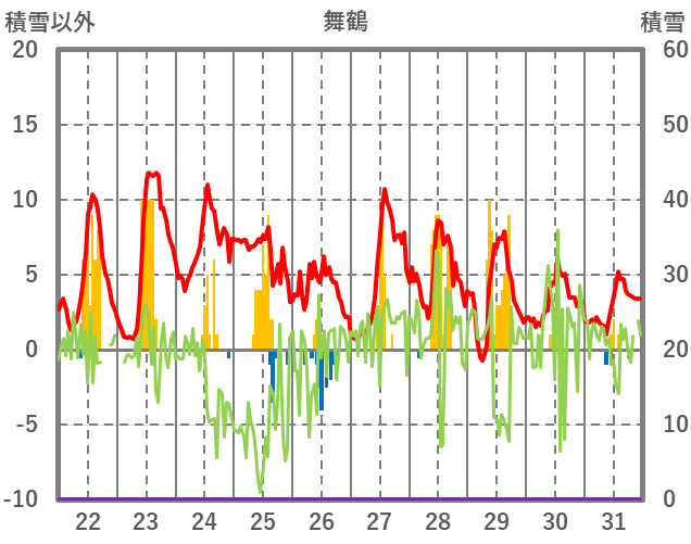 | 日 | 時 | 気温 | 降水 | 風向/風速 | 日照 | 積雪 | 降雪 |