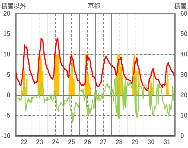 | 日 | 時 | 気温 | 降水 | 風向/風速 | 日照 | 積雪 | 降雪 |