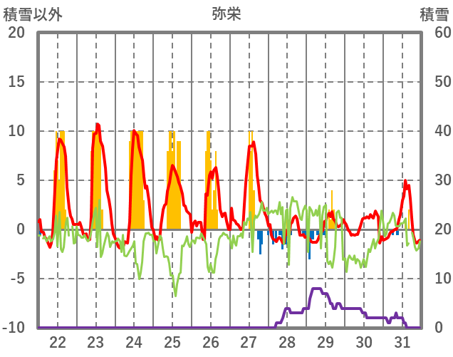 | 日 | 時 | 気温 | 降水 | 風向/風速 | 日照 | 積雪 | 降雪 |