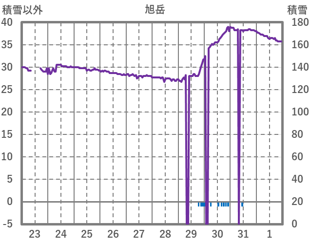 | 日 | 時 | 気温 | 降水 | 風向/風速 | 日照 | 積雪 | 降雪 |