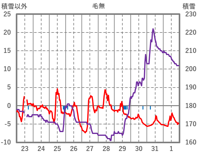 | 日 | 時 | 気温 | 降水 | 風向/風速 | 日照 | 積雪 | 降雪 |