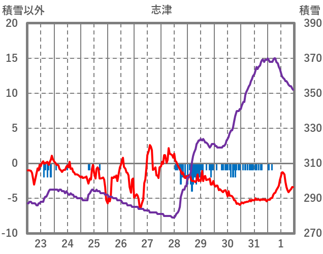 | 日 | 時 | 気温 | 降水 | 風向/風速 | 日照 | 積雪 | 降雪 |