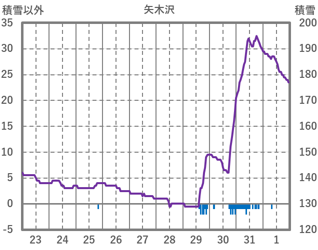 | 日 | 時 | 気温 | 降水 | 風向/風速 | 日照 | 積雪 | 降雪 |