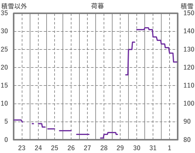 | 日 | 時 | 気温 | 降水 | 風向/風速 | 日照 | 積雪 | 降雪 |