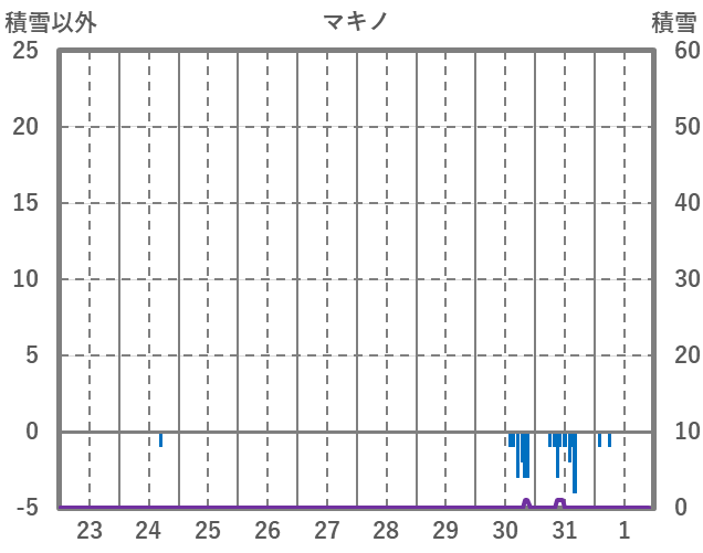 | 日 | 時 | 気温 | 降水 | 風向/風速 | 日照 | 積雪 | 降雪 |