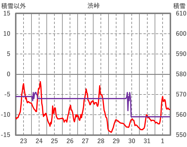 | 日 | 時 | 気温 | 降水 | 風向/風速 | 日照 | 積雪 | 降雪 |