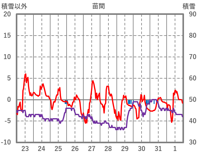 | 日 | 時 | 気温 | 降水 | 風向/風速 | 日照 | 積雪 | 降雪 |