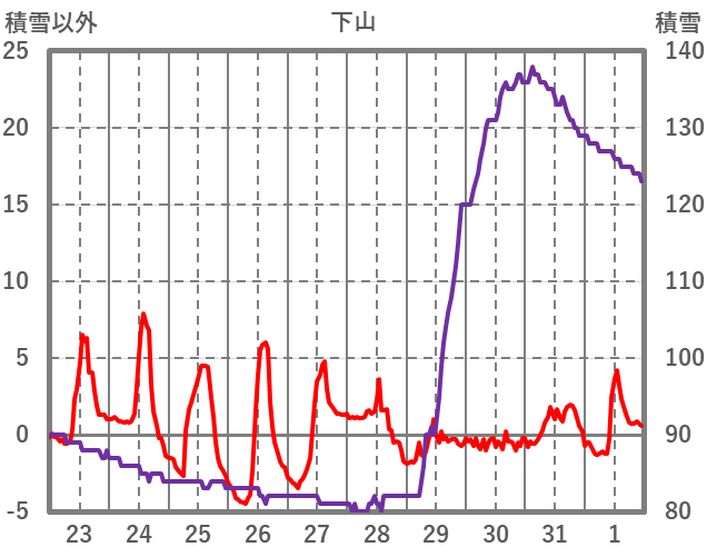 | 日 | 時 | 気温 | 降水 | 風向/風速 | 日照 | 積雪 | 降雪 |