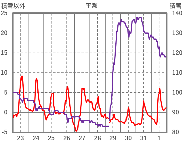 | 日 | 時 | 気温 | 降水 | 風向/風速 | 日照 | 積雪 | 降雪 |