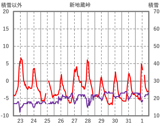 | 日 | 時 | 気温 | 降水 | 風向/風速 | 日照 | 積雪 | 降雪 |