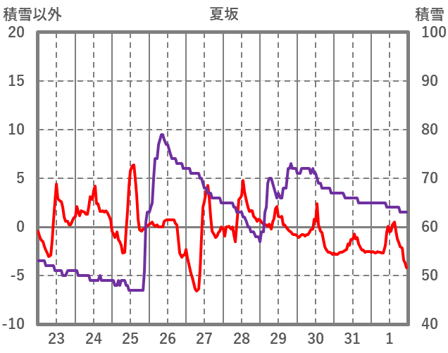 | 日 | 時 | 気温 | 降水 | 風向/風速 | 日照 | 積雪 | 降雪 |