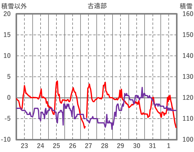 | 日 | 時 | 気温 | 降水 | 風向/風速 | 日照 | 積雪 | 降雪 |
