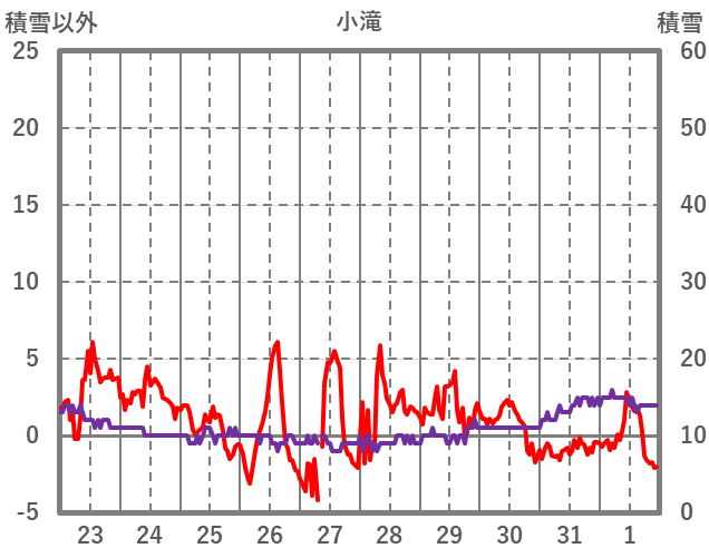 | 日 | 時 | 気温 | 降水 | 風向/風速 | 日照 | 積雪 | 降雪 |