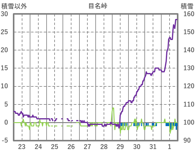 | 日 | 時 | 気温 | 降水 | 風向/風速 | 日照 | 積雪 | 降雪 |