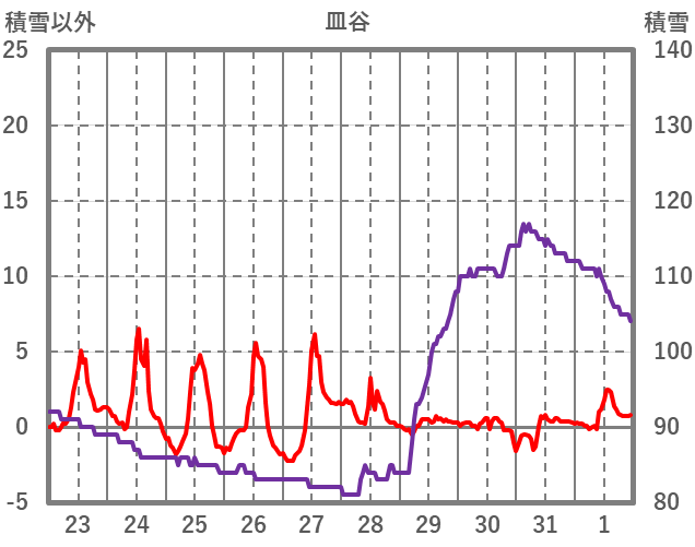 | 日 | 時 | 気温 | 降水 | 風向/風速 | 日照 | 積雪 | 降雪 |