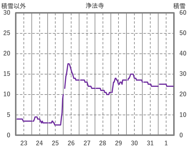| 日 | 時 | 気温 | 降水 | 風向/風速 | 日照 | 積雪 | 降雪 |