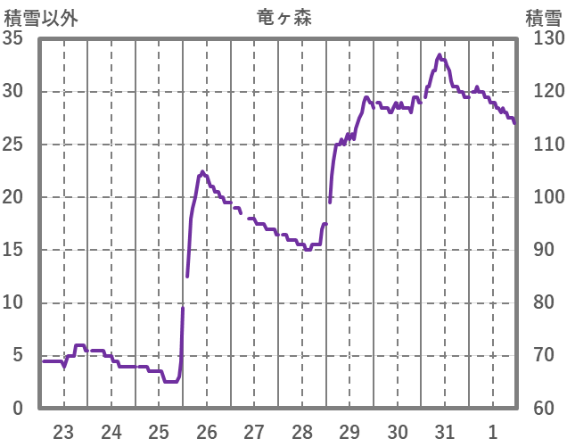 | 日 | 時 | 気温 | 降水 | 風向/風速 | 日照 | 積雪 | 降雪 |