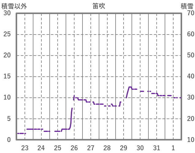 | 日 | 時 | 気温 | 降水 | 風向/風速 | 日照 | 積雪 | 降雪 |