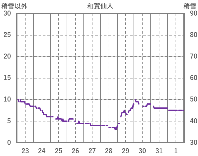 | 日 | 時 | 気温 | 降水 | 風向/風速 | 日照 | 積雪 | 降雪 |