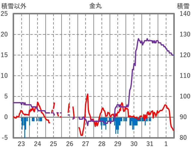 | 日 | 時 | 気温 | 降水 | 風向/風速 | 日照 | 積雪 | 降雪 |