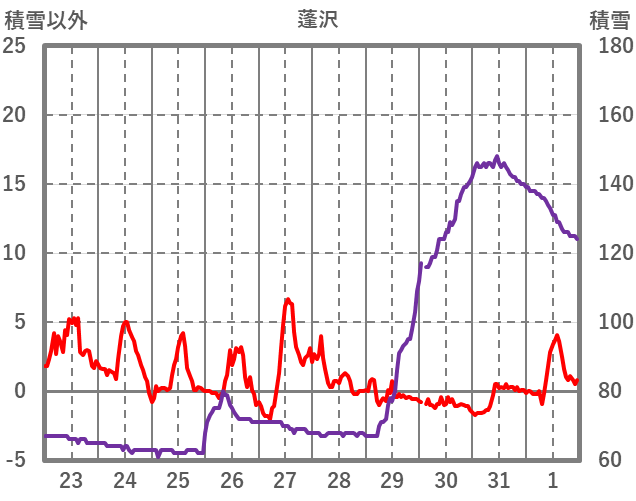 | 日 | 時 | 気温 | 降水 | 風向/風速 | 日照 | 積雪 | 降雪 |