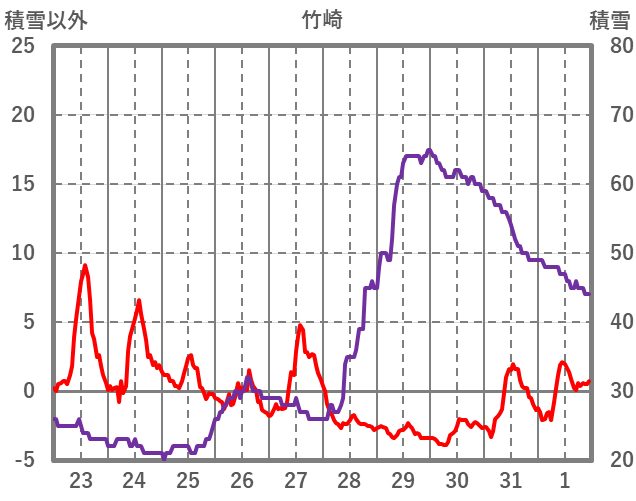 | 日 | 時 | 気温 | 降水 | 風向/風速 | 日照 | 積雪 | 降雪 |
