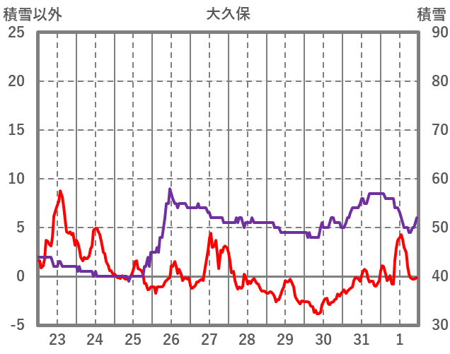 | 日 | 時 | 気温 | 降水 | 風向/風速 | 日照 | 積雪 | 降雪 |