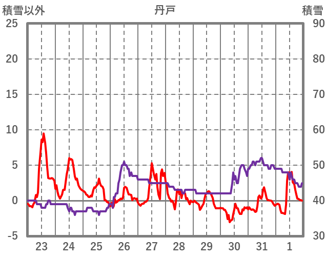 | 日 | 時 | 気温 | 降水 | 風向/風速 | 日照 | 積雪 | 降雪 |