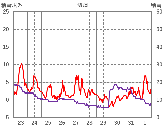 | 日 | 時 | 気温 | 降水 | 風向/風速 | 日照 | 積雪 | 降雪 |