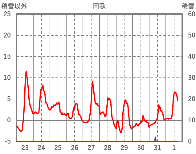 | 日 | 時 | 気温 | 降水 | 風向/風速 | 日照 | 積雪 | 降雪 |