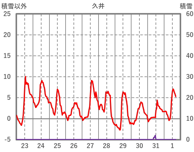 | 日 | 時 | 気温 | 降水 | 風向/風速 | 日照 | 積雪 | 降雪 |