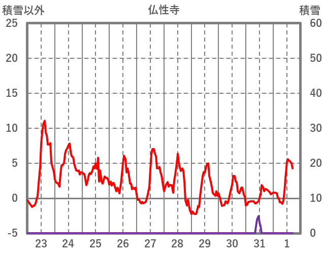 | 日 | 時 | 気温 | 降水 | 風向/風速 | 日照 | 積雪 | 降雪 |