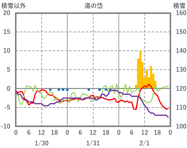 | 日 | 時 | 気温 | 降水 | 風向/風速 | 日照 | 積雪 | 降雪 |