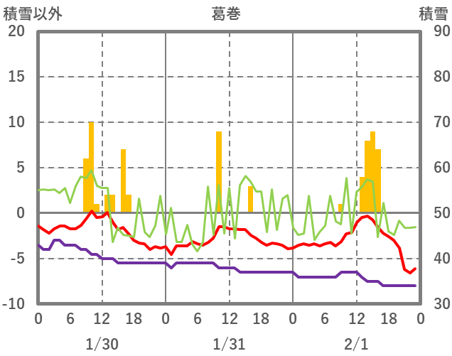 | 日 | 時 | 気温 | 降水 | 風向/風速 | 日照 | 積雪 | 降雪 |