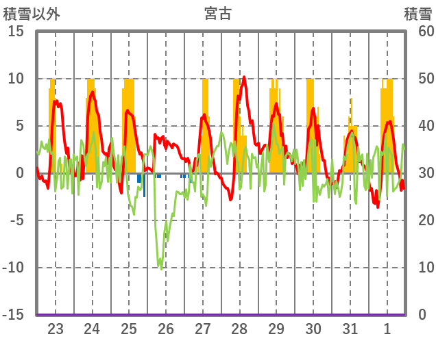 | 日 | 時 | 気温 | 降水 | 風向/風速 | 日照 | 積雪 | 降雪 |