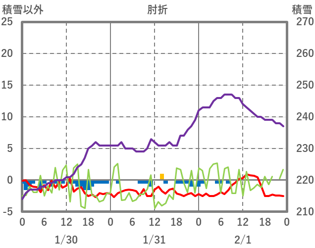 | 日 | 時 | 気温 | 降水 | 風向/風速 | 日照 | 積雪 | 降雪 |
