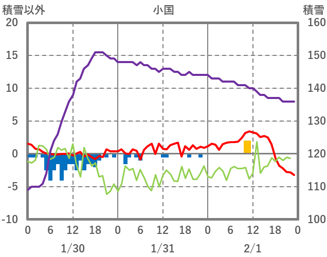 | 日 | 時 | 気温 | 降水 | 風向/風速 | 日照 | 積雪 | 降雪 |