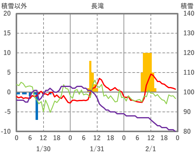 | 日 | 時 | 気温 | 降水 | 風向/風速 | 日照 | 積雪 | 降雪 |