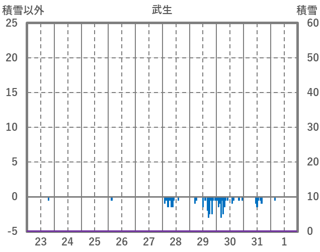 | 日 | 時 | 気温 | 降水 | 風向/風速 | 日照 | 積雪 | 降雪 |