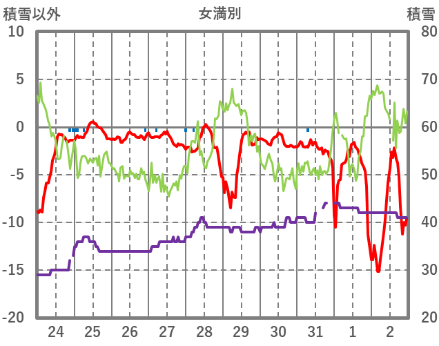 | 日 | 時 | 気温 | 降水 | 風向/風速 | 日照 | 積雪 | 降雪 |