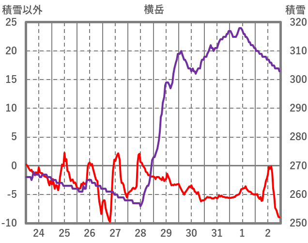 | 日 | 時 | 気温 | 降水 | 風向/風速 | 日照 | 積雪 | 降雪 |