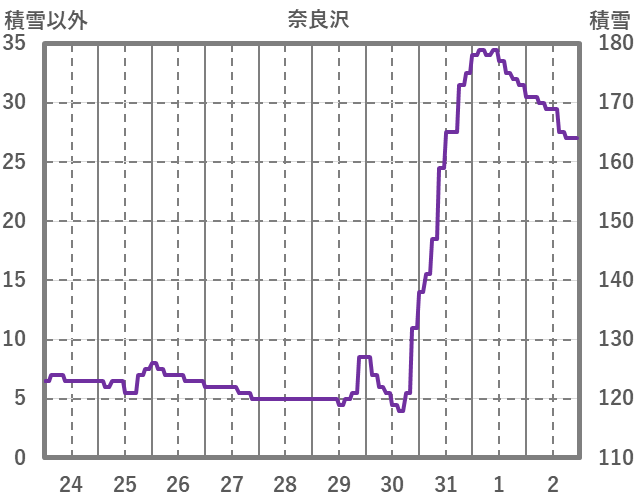 | 日 | 時 | 気温 | 降水 | 風向/風速 | 日照 | 積雪 | 降雪 |