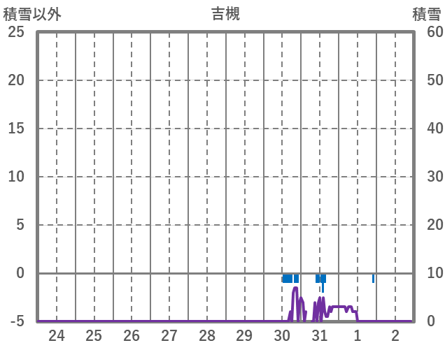 | 日 | 時 | 気温 | 降水 | 風向/風速 | 日照 | 積雪 | 降雪 |