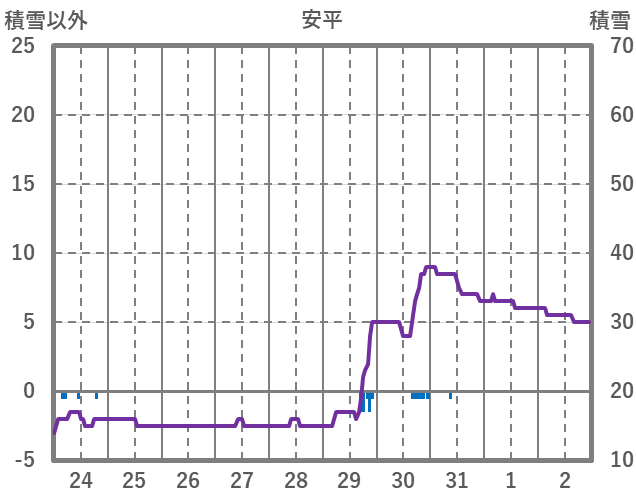 | 日 | 時 | 気温 | 降水 | 風向/風速 | 日照 | 積雪 | 降雪 |