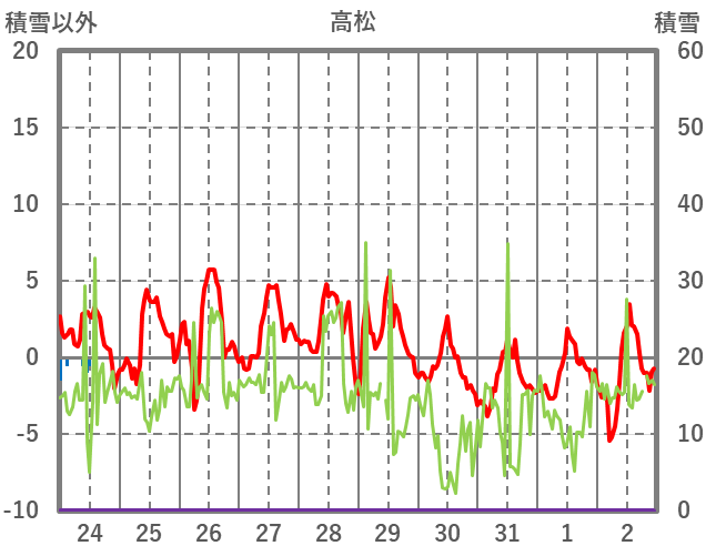| 日 | 時 | 気温 | 降水 | 風向/風速 | 日照 | 積雪 | 降雪 |