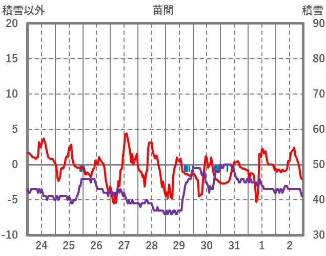 | 日 | 時 | 気温 | 降水 | 風向/風速 | 日照 | 積雪 | 降雪 |
