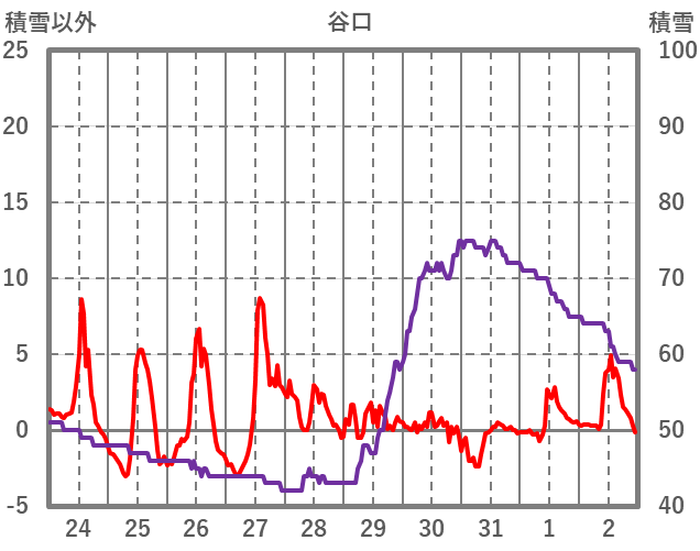 | 日 | 時 | 気温 | 降水 | 風向/風速 | 日照 | 積雪 | 降雪 |