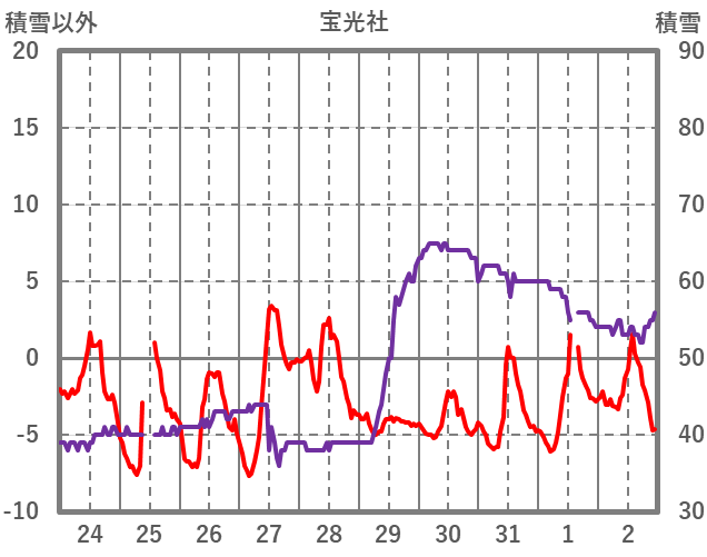 | 日 | 時 | 気温 | 降水 | 風向/風速 | 日照 | 積雪 | 降雪 |