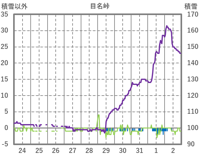 | 日 | 時 | 気温 | 降水 | 風向/風速 | 日照 | 積雪 | 降雪 |