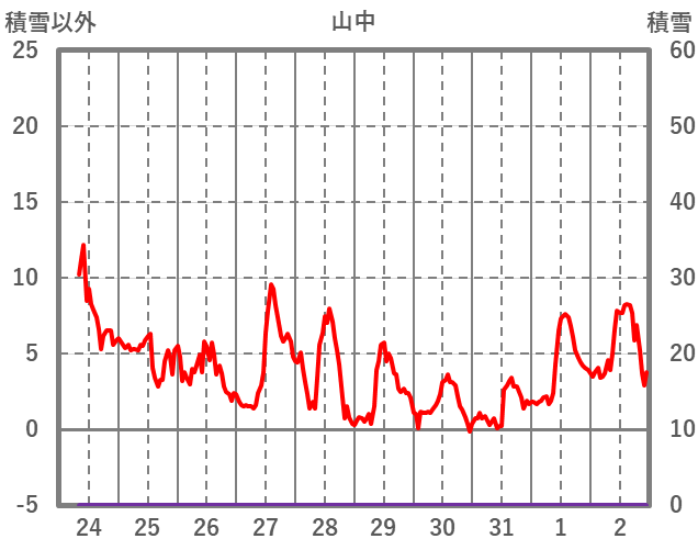 | 日 | 時 | 気温 | 降水 | 風向/風速 | 日照 | 積雪 | 降雪 |